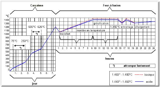 Courbe d'Attrempage et de Grésification pour creusets basiques et acides.